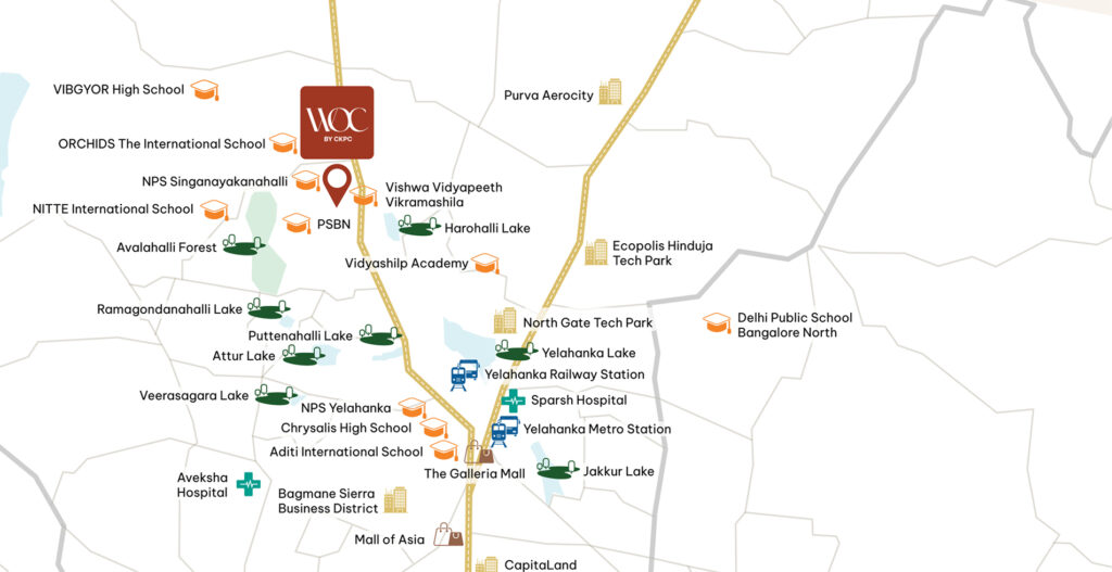 Indulge in Nature's Serenity at Bangalore Prime Spot CKPC Winds of Change has been thoughtfully designed to offer a contemporary living experience, combining the best of modern architecture, innovative design and high-quality construction standards. The project is set amidst lush green surroundings, providing an escape from the hustle and bustle of city life. The project is located in the bustling and fast-growing area Yelahanka, next to Prestige Royal Garden, North Bangalore. CKPC Winds of Change is designed to meet the emerging needs of modern urban living, offering both comfort and convenience.